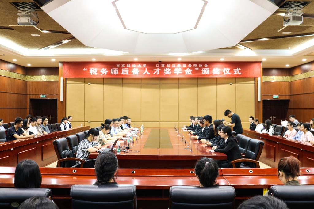 于工科楼会议室举行2019年度“税务师后备人才奖学金”捐赠暨颁奖仪式。江苏省注册税务师协会会长周苏明,副会长于阜宁,办公室副主任徐华敏,我校对外联络处副处长王冲,色情直播