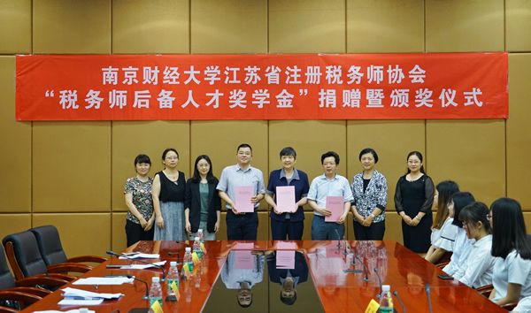5月30日,我校与江苏省注册税务师协会签订 “税务师后备人才奖学金”捐赠协议,并于工科楼会议室举行2018年度奖学金颁奖仪式。江苏省注册税务师协会会长周苏明,副会长于阜宁,办公室主任徐华敏,我校对外联络处处长陆明峰,色情直播